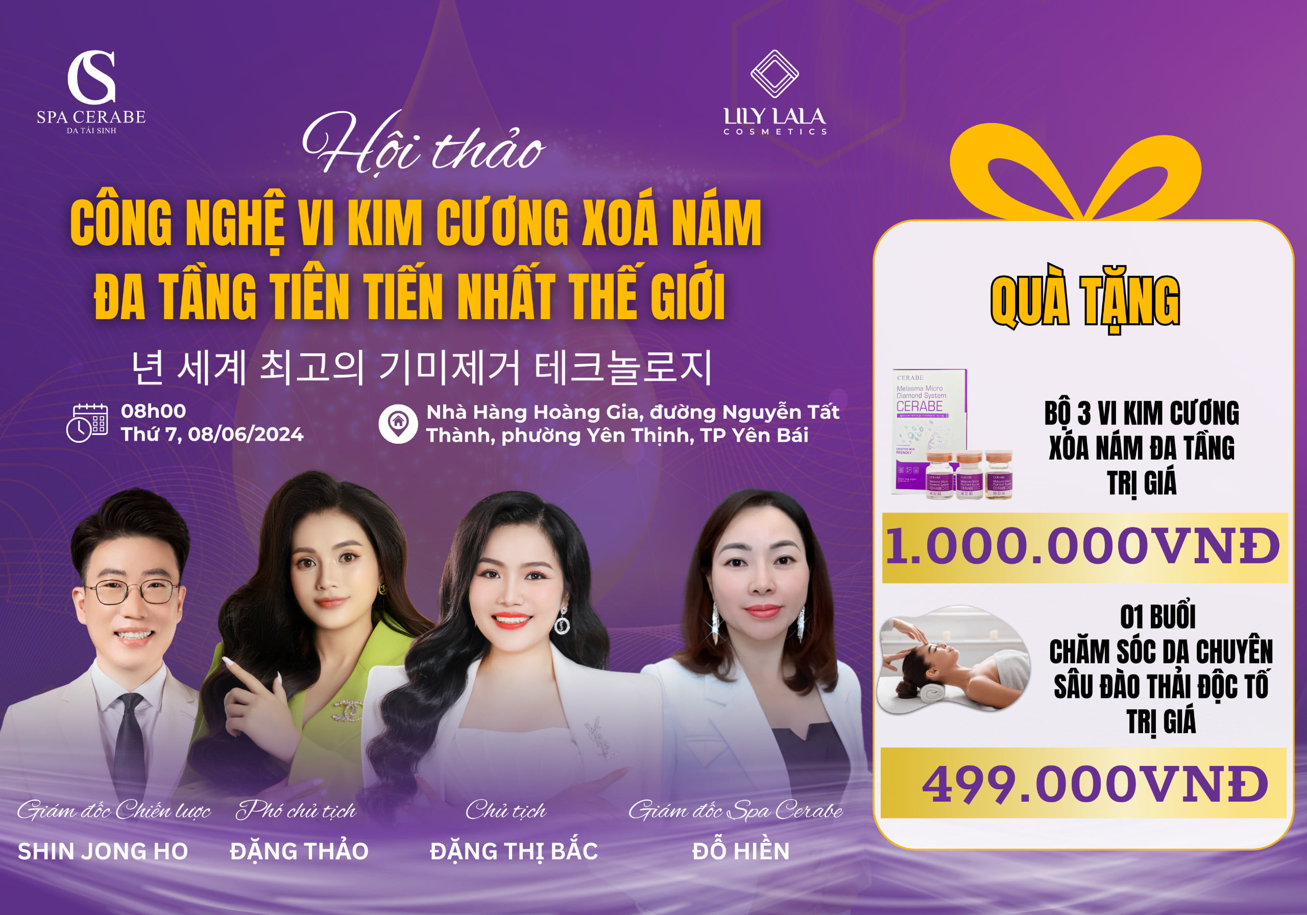 Hội thảo Công Nghệ Vi Kim Cương Xóa Nám là sự kiện không thể bỏ lỡ trong tháng 6 này tại thị trường Yên Bái. Chúng tôi mong đợi được gặp gỡ và đồng hành cùng quý khách hàng trong hành trình làm đẹp.
