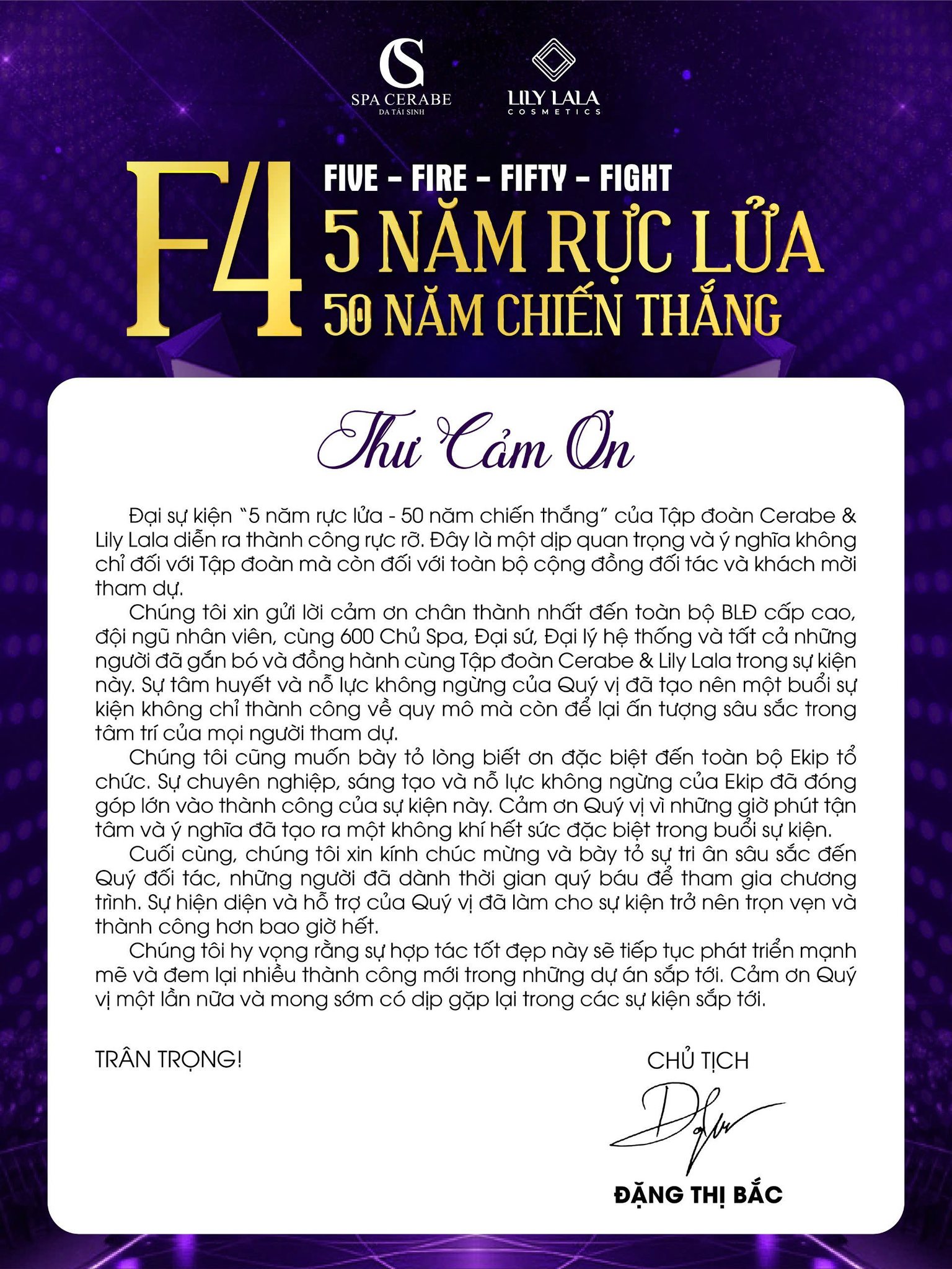 Sự kiện F4 không chỉ là cột mốc nhìn lại hành trình đã qua, mà còn là ngọn lửa thắp sáng niềm tin cho chặng đường phía trước. Chúng tôi cam kết tiếp tục mang đến những giá trị tốt đẹp nhất cho khách hàng, đối tác và toàn thể cộng đồng.